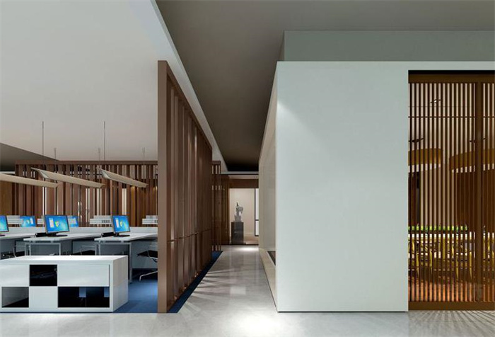 2、講究一種空間的明快鮮明感,干凈整潔明亮,光線充足的人性化空間是簡(jiǎn)約中式辦公室裝修風(fēng)格設(shè)計(jì)特點(diǎn)。