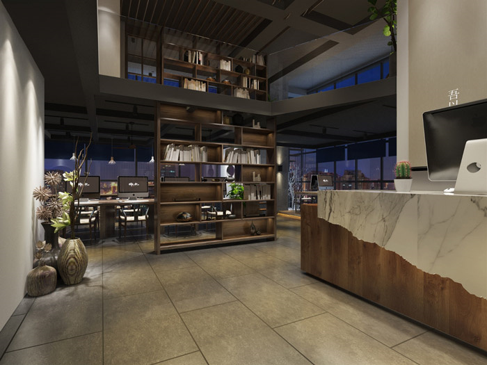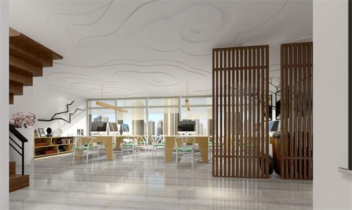 小型簡(jiǎn)約中式辦公室裝修:此案是一個(gè)需搭建閣樓的復(fù)試戶型,因公司主營(yíng)是化妝品,所以在辦公室裝修設(shè)計(jì)時(shí)格外注重產(chǎn)品體驗(yàn)度。辦公室裝修設(shè)計(jì)整體采用比較簡(jiǎn)單的木色及局部跳躍色,木質(zhì)屏風(fēng)及造型的處理打造文化及柔美韻味,前臺(tái)體驗(yàn)區(qū),地面藝術(shù)涂料處理,天花木質(zhì)造型吊頂,墻面裝飾淺木色及白色主色調(diào),讓整個(gè)前臺(tái)更加大氣,舒適。公共辦公區(qū)天花造型處理,亮色家具打造舒適的辦公環(huán)境。