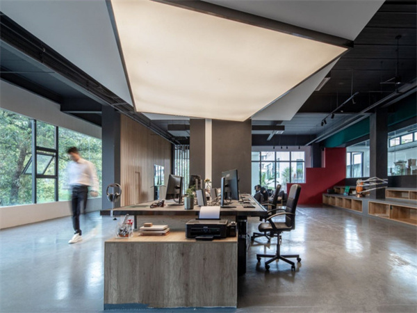 既然是工業(yè)風(fēng)辦公室裝修設(shè)計,那么首先就不得不說的就是其裝修材料,首先想到的那就是金屬制成的素材。金屬是一種非常強(qiáng)韌而且耐久的材料,從上個世界的工業(yè)革命開始之后,人們生活中就開始出現(xiàn)金屬制的生活用品。但是呢,因為金屬風(fēng)格實在冷調(diào),所以要與木材混搭,這樣既能提升“溫度”,還能保有原來的粗狂質(zhì)感,不要太好看!既然說到與木頭搭配,那我們就來說說這個工業(yè)風(fēng)的木頭,其實用的更多的還是原木。有很多鐵制的辦公桌椅都會用木板來作為桌面,就類似于大學(xué)上課時大教室的桌椅,而且這也能夠完整的展現(xiàn)木紋的深淺與紋路變化。像那種比較老舊的木頭,做起桌椅來就有質(zhì)感更有感覺了。工業(yè)風(fēng)格的設(shè)計仿佛在墻上的心思不大,但卻是隱藏著巨大的藝術(shù)空間,除了磚墻以外,還有就是水泥墻設(shè)計,比起磚墻的復(fù)古,水泥墻多了一些沉靜與現(xiàn)代。待在由水泥建構(gòu)起來的辦公室內(nèi),整個人都不由得放慢腳步,享受工業(yè)風(fēng)辦公室的靜謐與美好。而金屬骨架及雙關(guān)節(jié)燈具,是非常容易凸顯工業(yè)風(fēng)格,效果可是杠杠的,再在辦公桌上擺上一盞這樣的燈,一下辦公氛圍就提升了一個檔次。