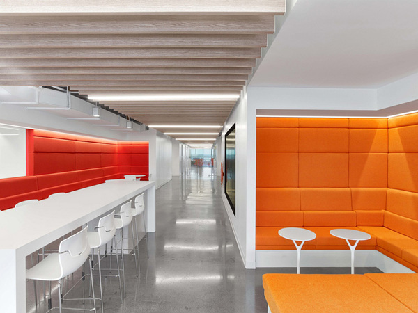 設(shè)計師根據(jù)企業(yè)特性打造了一個充滿動感、活力、趣味以及空間表現(xiàn)力的辦公空間。設(shè)計的關(guān)鍵元素包括盡可能擴(kuò)大視野和戶外天光,讓領(lǐng)導(dǎo)層更通透可視。