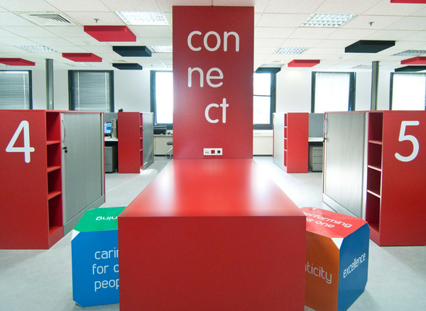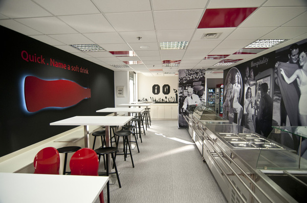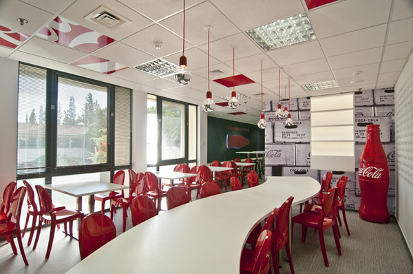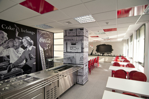 上海辦公室裝修公司-領企裝飾今天要與大家分享的是,Coca-Cola公司位于希臘總部的辦公室裝修設計。辦公室裝修設計采用了大片的白色與可口可樂經典的紅色相搭配,清新悅目的色彩烘托出一個舒適、愉快的工作氛圍。