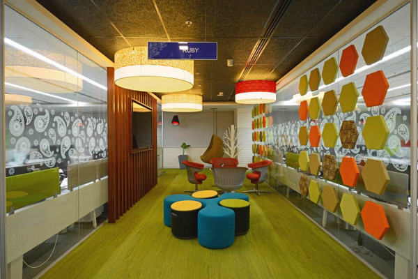 上海辦公室裝修公司-領(lǐng)企裝飾今天與大家分享的是,印度海德拉巴Pegasystems辦公室裝修設(shè)計(jì)。其辦公室裝修設(shè)計(jì)充分體現(xiàn)了熱情洋溢的異域印度風(fēng)情。