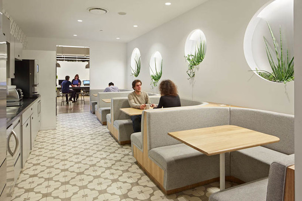 Wieden+Kennedy崇尚精誠合作的工作態(tài)度,因此設(shè)計(jì)師設(shè)計(jì)了多種多樣的公共空間用以隨時隨地的探討與對話。各種尺度的會議室、休閑金屬吧臺、舒適的午餐區(qū)、可以拉伸的木制會議桌、多功能運(yùn)動或演講廳、藍(lán)莓叢中蜿蜒的座椅露臺等,為員工創(chuàng)造了各種開放性的活動場所。
