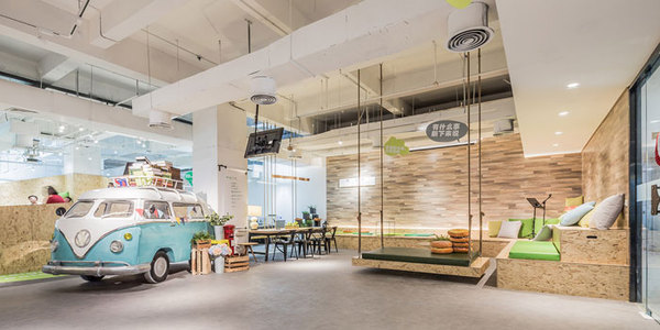 休息區(qū)域的設計,創(chuàng)意來自臨時休息站,汽車在旁仿佛會載人穿越無限空間,休息區(qū)域因此凸顯出存在的重要性,為員工打造偷懶于現(xiàn)世的菱形空間。