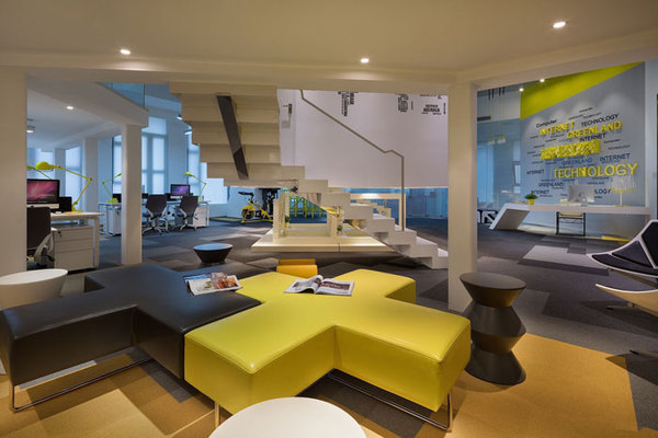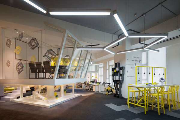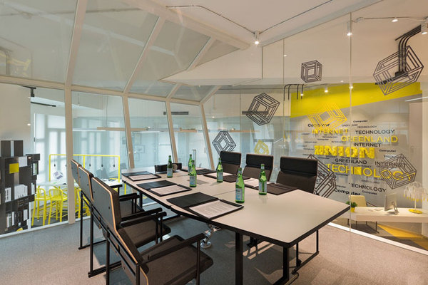會(huì)議室的設(shè)計(jì),設(shè)計(jì)師將其安置在空間的中心,一則做為企業(yè)的亮點(diǎn)存在,二則懸空的空間給人以俯視的感覺(jué),本空間不論是內(nèi)部還是外部都攜帶創(chuàng)意的屬性,這樣的空間使人靈感無(wú)限。