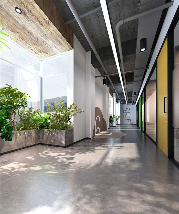 過道區(qū)域的設(shè)計:設(shè)計師在設(shè)計的時候,以點綴為主要設(shè)計目的,硬裝之余以綠植做為主要的點綴飾物,將自然很好的引入室內(nèi)。