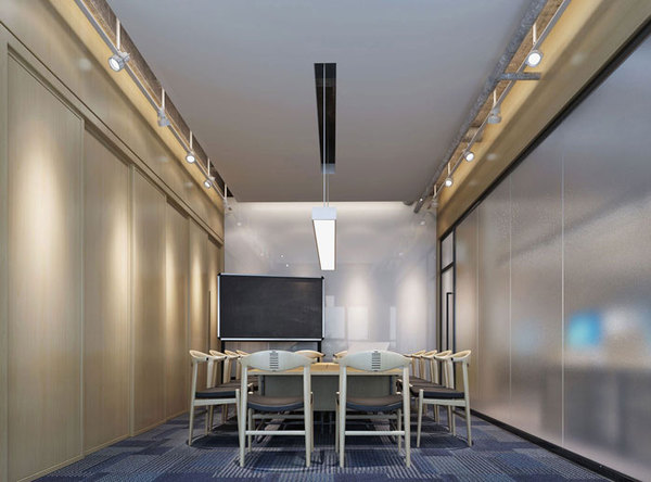 會(huì)議區(qū)辦公室的設(shè)計(jì),設(shè)計(jì)師將光效弄得特別亮,很有潮氣活力,很有層次感,有由淺至深地了解一個(gè)品牌的寓意。