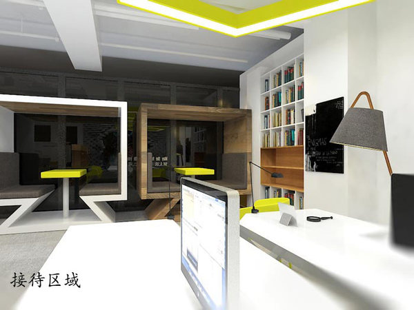 接待區(qū)域的設計:設計師在設計的時候,費勁腦汁的去搜索近些年來的創(chuàng)意辦公家具設計,設計師的目的就只有一個,就是希望在辦公家具上另辟蹊徑,以此彌補小空間的天然限制。