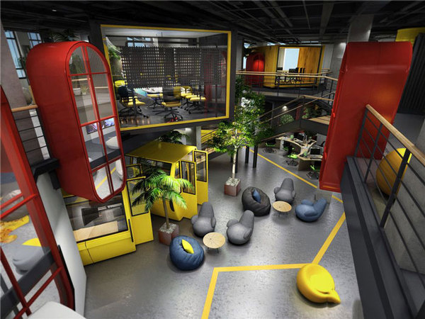 俯視整個(gè)空間,可以發(fā)現(xiàn)仿佛進(jìn)入了科幻的世界一般,造成這樣的設(shè)計(jì)師以不規(guī)則的空間格局,在設(shè)計(jì)師魔法的手中,按照一定的步驟進(jìn)行融合,以此形成宛如科幻的辦公空間。