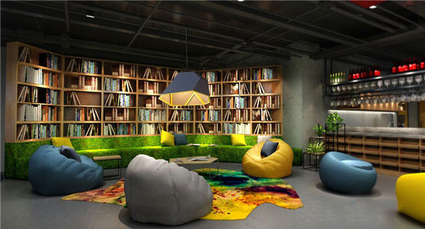 書吧的設(shè)計(jì),設(shè)計(jì)師在設(shè)計(jì)的時(shí)候,以圖書館為原型,利于書架本身的隔離屬性將空間隔離與主空間之外,同時(shí)人性化的軟裝休息區(qū)域,更為員工打造休息、休憩與減壓。