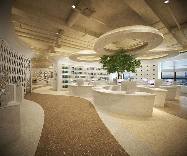 2)弧形動(dòng)線布局設(shè)計(jì),可提高辦公功能上的可視性和辦公機(jī)動(dòng)性,對辦公室裝修效果也有一定幫助;