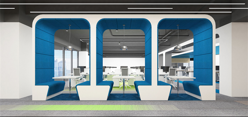 2、在辦公室裝修中不同的顏色會(huì)帶給人不同的心情,淺色、藍(lán)色可以使人產(chǎn)生放松感。藍(lán)色很容易讓人安靜下來(lái),它代表著寧?kù)o,也有研究表明人的身體處于藍(lán)色的房間能夠放松神經(jīng),在輕松安靜的環(huán)境中辦公是非常舒適的,因此藍(lán)色也是辦公室設(shè)計(jì)中常用的顏色。