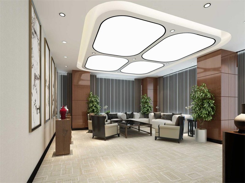 首先前廳作為給客戶的第一印象中的關(guān)鍵一環(huán),設(shè)計(jì)一定要大氣。背景墻可使用瓷磚+金屬搭配,前臺(tái)選用米白色的大理石+金屬點(diǎn)綴與背景墻相呼應(yīng)。天花部分則可以通過(guò)造型燈帶,燈具裝飾,格柵,打造一個(gè)通透大氣的前廳。其次,使用*多次數(shù)的會(huì)客廳、接待室,可以運(yùn)用以企業(yè)商標(biāo)為基調(diào)的地毯或暖色系的地毯,木色或金色的隔斷,再通過(guò)軟裝的搭配,形成舒適、大氣、穩(wěn)重的空間。