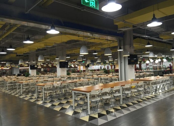 這是食堂,好吧,跟辦公區(qū)一樣密集,還是給人一種很擁擠的感覺,說實話,設計感什么的暫時還談不上。