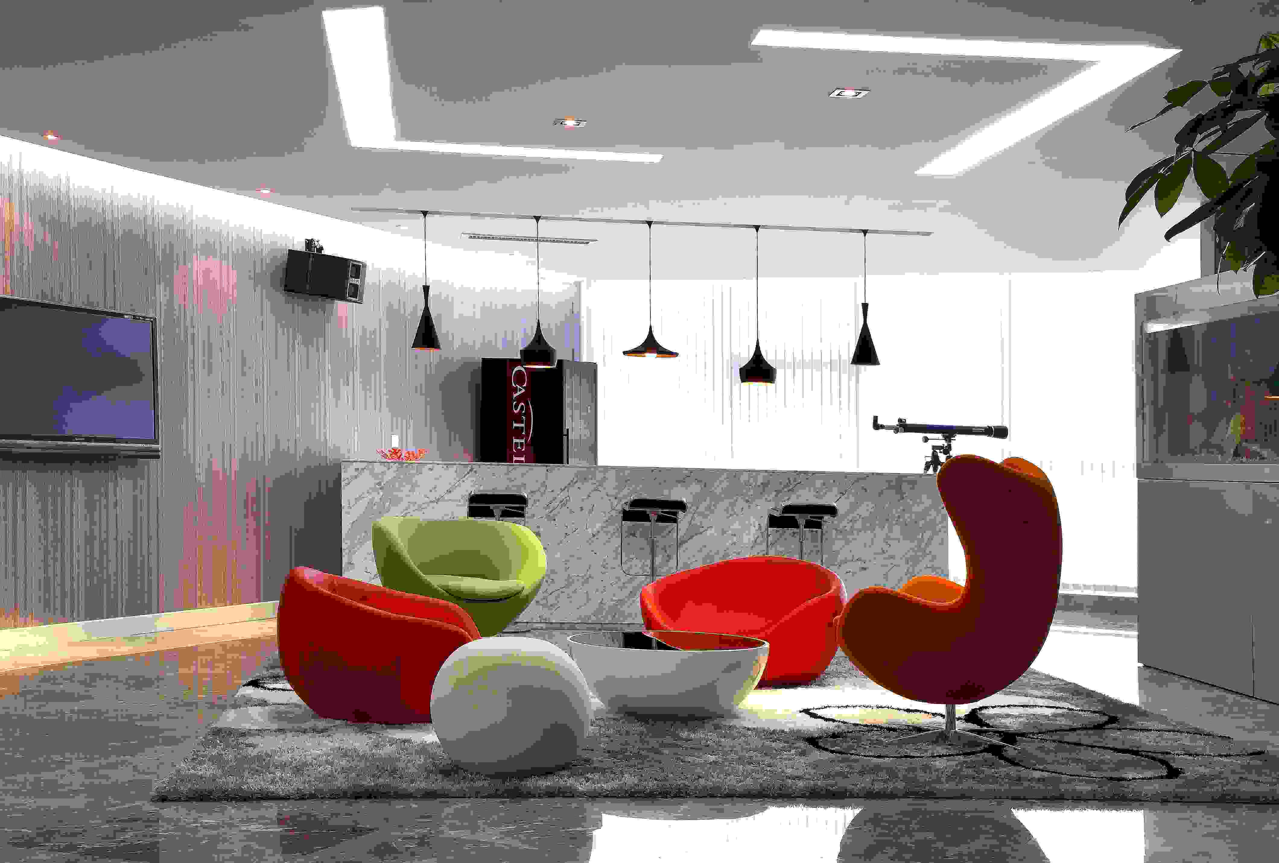 新潮熱烈 使用幾何圖案作為設(shè)計元素,明亮度對比強烈,使用新式裝修材料。適用于新興的電腦資訊業(yè)、媒體行業(yè)。